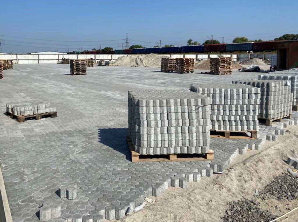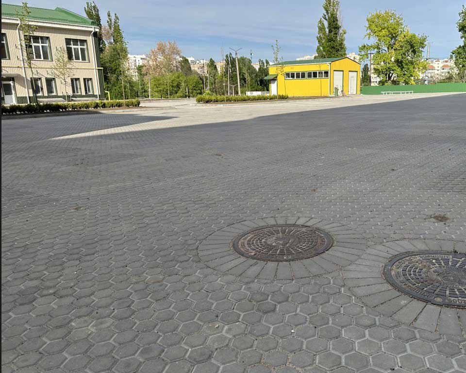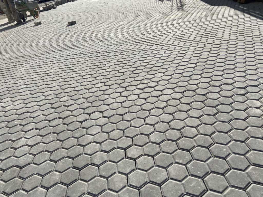 При укладанні тротуарної плитки «Соти» досягається оптимальне заповнення площини мощення, що уникне необхідності обрізання по краях. Більш того, ця плитка забезпечує менший знос від навантаження техніки та зменшує рівень шуму під час руху.